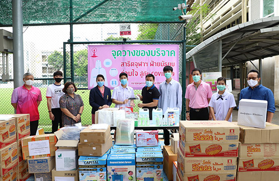 คุณถกลเกียรติ วีรวรรณ ประธานเจ้าหน้าที่บริหารช่องวัน31 พร้อมด้วย คุณกณิการ์ วีรวรรณ และตัวแทนจากนักแสดงช่องวัน31 อาทิ เน๋ง-ศรัณย์ นราประเสริฐกุล, กำปั่น-กรวิชญ์ สารสิน ซึ่งเป็นนักเรียนเก่าสาธิตจุฬาฯ เป็นตัวแทนรับมอบเครื่องพ่นแอลกอฮอล์, เจลแอลกอฮอล์, หน้ากากเฟสชิว, หน้ากากอนามัย ฯ พร้อมทั้งข้าวสารอาหารแห้ง จาก อาจารย์พรพรหม ชัยฉัตร ผู้อำนวยการโรงเรียนสาธิตจุฬาลงกรณ์มหาวิทยาลัย ฝ่ายมัธยม และรองคณบดีคณะครุศาสตร์ จุฬาลงกรณ์มหาวิทยาลัย พร้อมด้วยคุณเป๊ะ-กนิษฐ์ สารสิน นายกสามาคมนักเรียนเก่าสาธิตจุฬาฯ เป็นผู้ส่งมอบอุปกรณ์ และของใช้จำเป็นดังกล่าว ซึ่งได้รับบริจาคมาจากเหล่านักเรียน, ผู้ปกครอง ส่งต่อให้กับโครงการ "วันสร้างสุข" สู้ภัยโควิด-19 ช่องวัน31 เพื่อส่งต่อความช่วยเหลือไปยังหน่วยงานต่างๆ รวมทั้งประชาชนที่ได้รับผลกระทบจากวิกฤตโควิด-19 ทั่วประเทศ โดยงานจัดขึ้น ณ โรงเรียนสาธิตจุฬาลงกรณ์มหาวิทยาลัย ฝ่ายมัธยม เมื่อเช้าวานก่อน