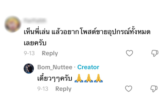 กระแสแซวนี้กลายเป็นไวรัลสุดขำในโซเชียล ที่ทั้งยกย่องความเทพของบอม และตอกย้ำเอกลักษณ์การเล่นที่ทำให้ใครๆ ก็ต้องจับตามอง ส่วนใครที่อยากชมฝีมือการเล่นกีต้าร์ของบอม ก็สามารถตามไปชมสดๆ ตามตารางงานโชว์ของวงได้ที่เพจวง Yes’Sir Days ทุกช่องทาง หรือจะติดตามทางช่องทางส่วนตัว ไว้ดูการสอนเทคนิคกีต้าร์ต่างๆ ได้ที่ Bom_nuttee ได้ทุกช่องทางเช่นกัน